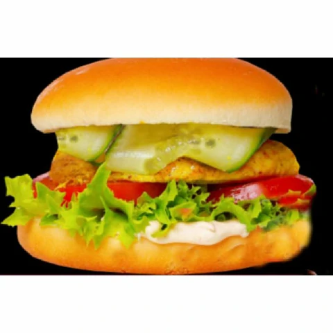 Состав: Нежнейшая котлета из телятины, сыр, слайсы помидора, огурца, лука, фирменный соус….