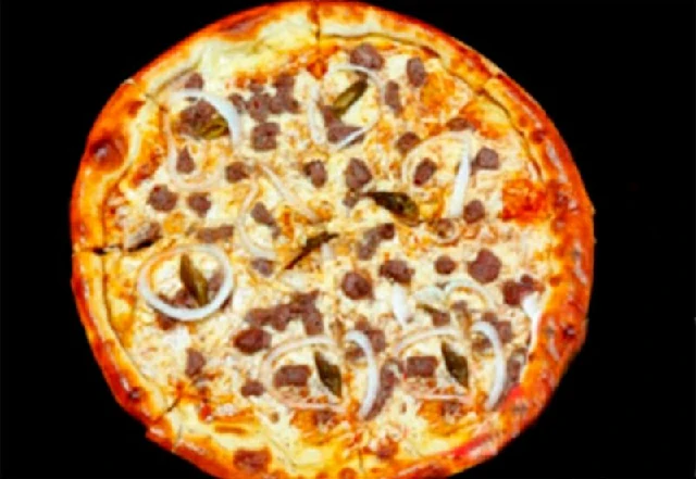 Тесто, соус, сыр, говядина, лук репчатый, острый перец