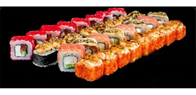 Унаги гриль 4 штуки Мидии гриль 4 штуки Креветка гриль 4 штуки Калифорния гриль 4 штуки Запечённый рай 4 штуки Чикен лава 4 штуки