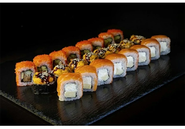 Микс ролл( ф-я 4шт, к-я 4шт), Микс(креветка 4ш, угорь 4шт), Микс гриль(мидии гриль 4шт, кальмар гриль 4шт)