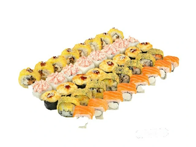 Состав: Филадельфия, Унаги гриль, Чикен лава, Темпура кани, Темпура мидии