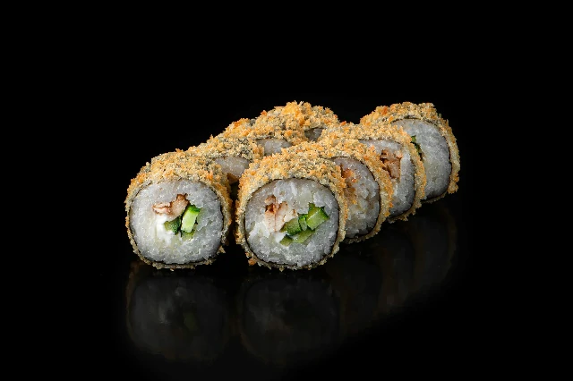 Состав: Рис, нори, сыр, огурец, курица, панировка